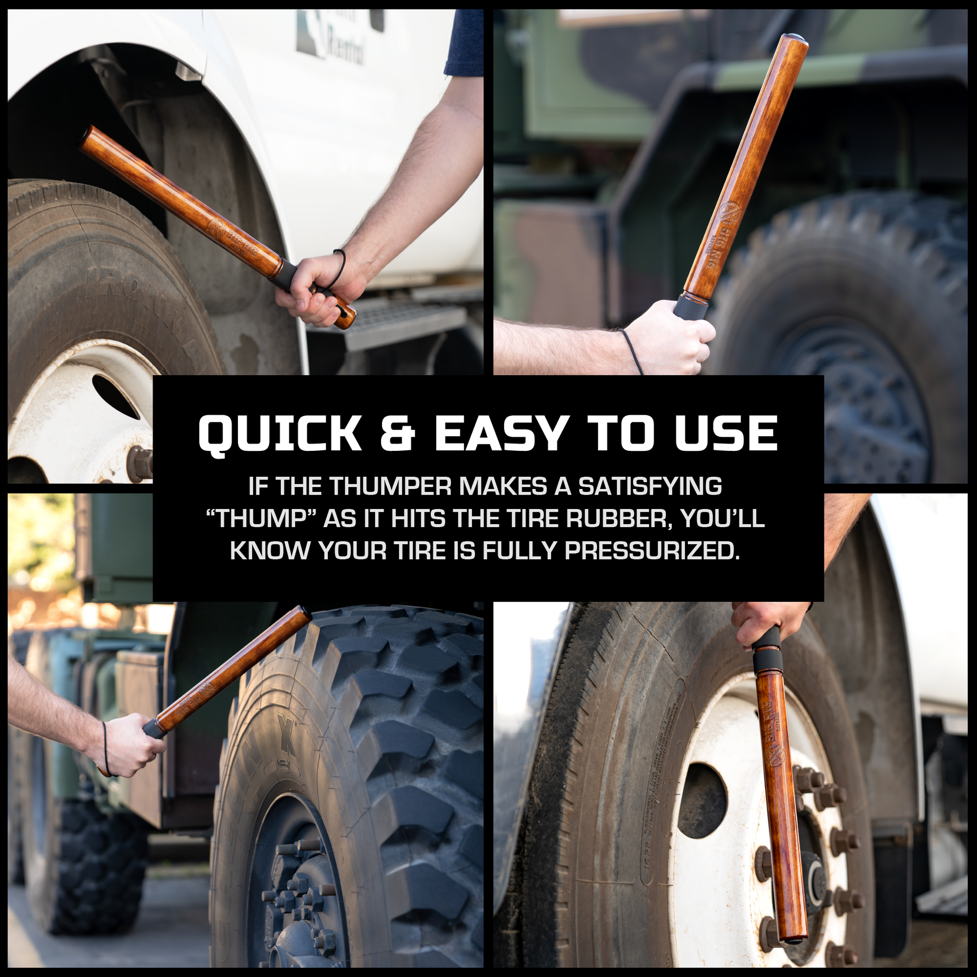 Simply strike your tire with the thumper. A solid thump and bounce-back indicate a well-inflated tire, allowing for quick checks before hitting the road.